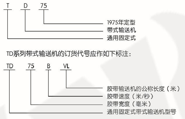 TD係到帶式輸送機的產品代號為TD75其意義如下